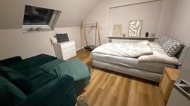 Moderne möblierte 83qm Wohnung mit 2 Schlafzimmern, großem Wohn- und Essbereich, voll ausgestatteter Küche sowie Bad mit Dusche und Badewanne. Gartenmitbenutzung mit eigenem Sitzbereich.