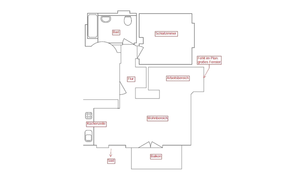 66m², on 1. floor, 1 bedroom, in older building, in good condition